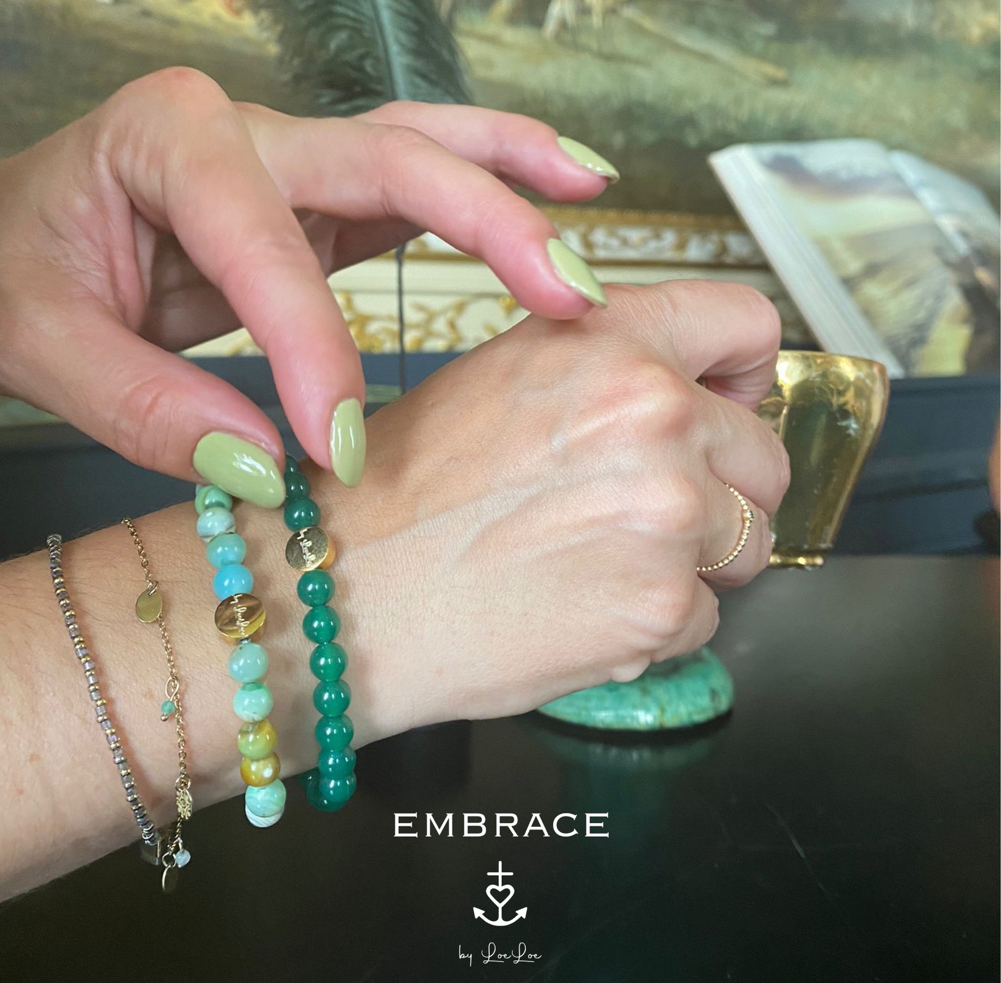 Deze prachtige Agaat armband is uitgevoerd met 6 mm hoge kwaliteit natuursteen kralen en een bedel met het logo “by Loeloe.”