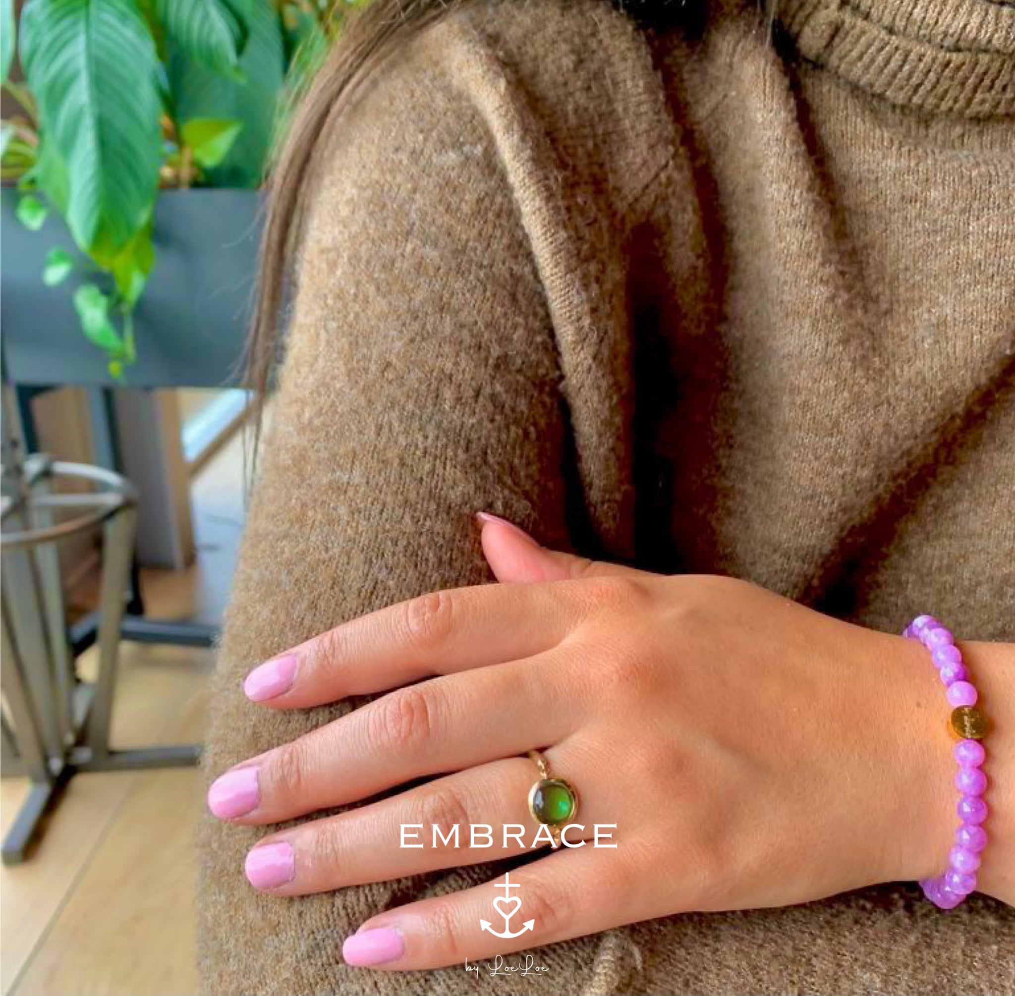 Deze prachtige Jade  armband is uitgevoerd met 6 mm hoge kwaliteit natuursteen kralen en een bedel met het logo “by Loeloe.”