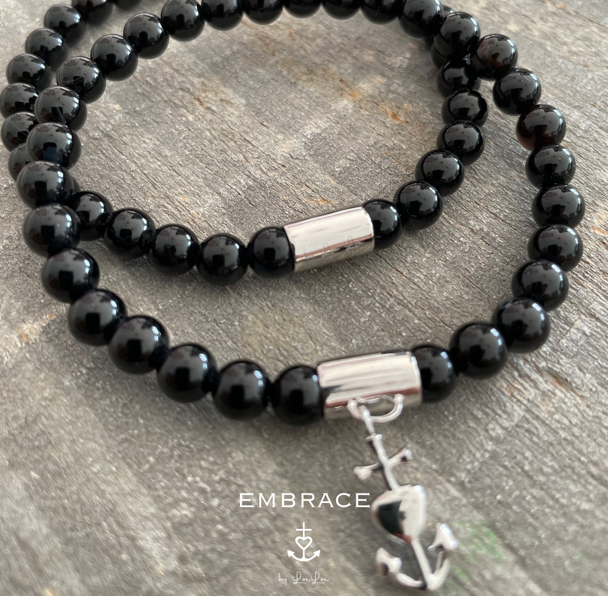 Deze prachtige Onyx armband is uitgevoerd met 6 mm hoge kwaliteit natuursteen kralen en een bedel met het logo “by Loeloe”.